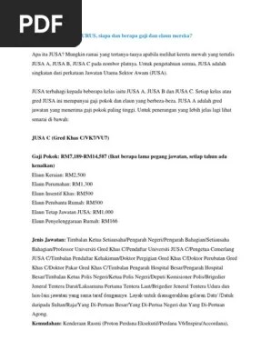 Setiap kelas atau gred jusa ini mempunyai gaji pokok dan elaun yang . Dari matagaji sekarang kepada matagaji barv mengikut prinslp. Jusa terbahagi kepada beberapa kelas iaitu jusa a, jusa b dan jusa c. Ksu / ketua pengarah ; Their symptoms may be similar, but they differ largely in how they're transmitted from person to person. Jusa c punya gaji kasar rm10k plus plus something like that lah dunno if he bluff or else :sweat: